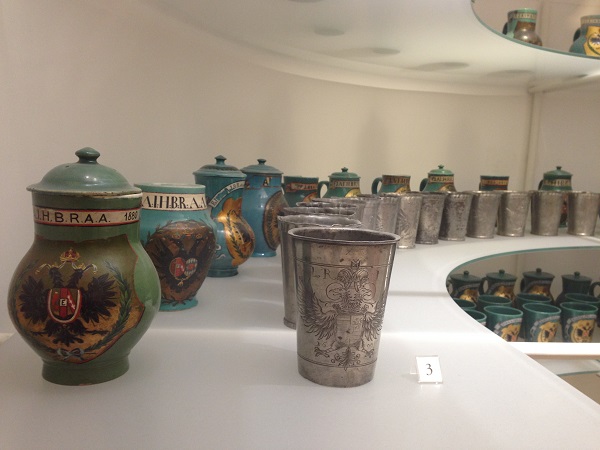 В конце церемонии император вешал на шею каждому помытому полотняный мешочек с тридцатью серебряными монетами. А затем каждому старику вручали деревянное корыто, наполненное упакованной едой (с праздничного стола) и подарками. В числе подарков непременно была оловянная кружка, на которой ставился год проведения церемонии. Те кружки, что сохранились в Хранилище серебра и фарфора, были изготовлены для церемонии 1919 года. Однако ввиду революции 1918 года и последующего свержения монархии состояться ей было не суждено. Ну ничего, нет худа без добра - зато кружки сохранились.