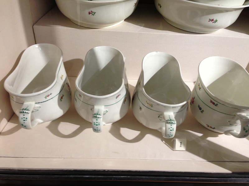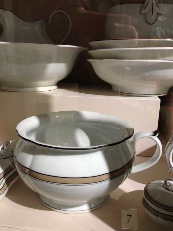 На этой витрине выставлен так называемый "Санитарный фарфор". Дело в том, что вплоть до 1876 года императорский двор в Вене мылся по старинке, с применением тазов, рукомойников и кувшинов. Нужду, по доброй средневековой традиции, справляли в ночные вазы.