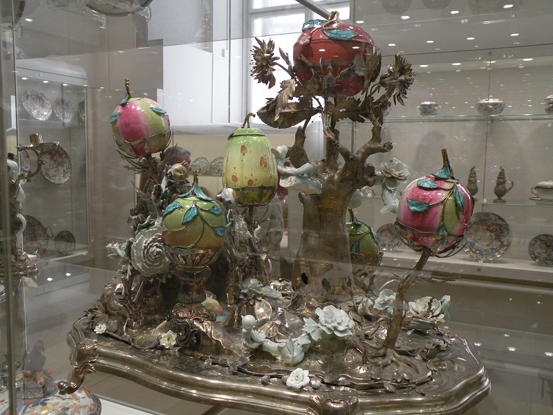 Китайские фарфоровые курильницы вольно разместились на серебряном дереве. Сие изделие использовалось для ароматизации помещений императорской зимней резиденции Габсбургов в Вене.