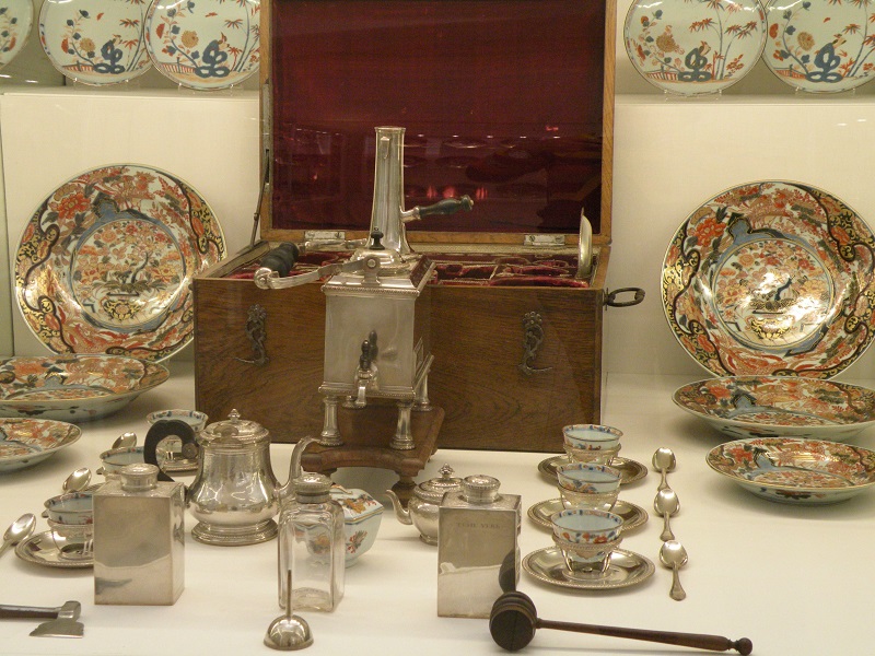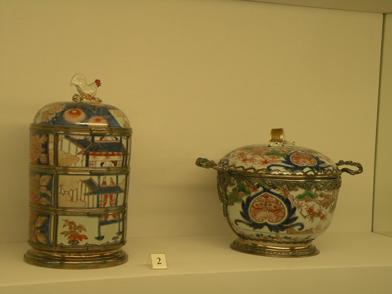 В 16 веке в Японии в районе Арита была обнаружена первоклассная глина, пригодная для производства высококачественного фарфора. Было организовано производство, и на свет появился фарфор, впоследствии названный "имари". От китайского фарфора его отличала необычная цветовая гамма - сочетание синего и оранжевого цветов. Фарфор этот начал пользоваться огромной популярностью у европейцев. Как было принято в то время, фарфор сначала обрамляли в серебро, чтобы сделать его пригодным для европейского образа жизни. Вот такой сервиз для путешествий был создан на основе фарфора имари для императрицы Марии-Терезии.